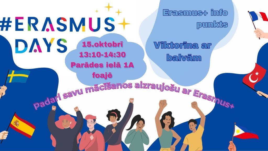 – Uzzināt vairāk par Erasmus+ studiju, prakses un personāla mobilitātes iespējām. Darbosies Erasmus+ informācijas punkts, kurā varēs saņemt atbildes uz visiem interesējošajiem jautājumiem.