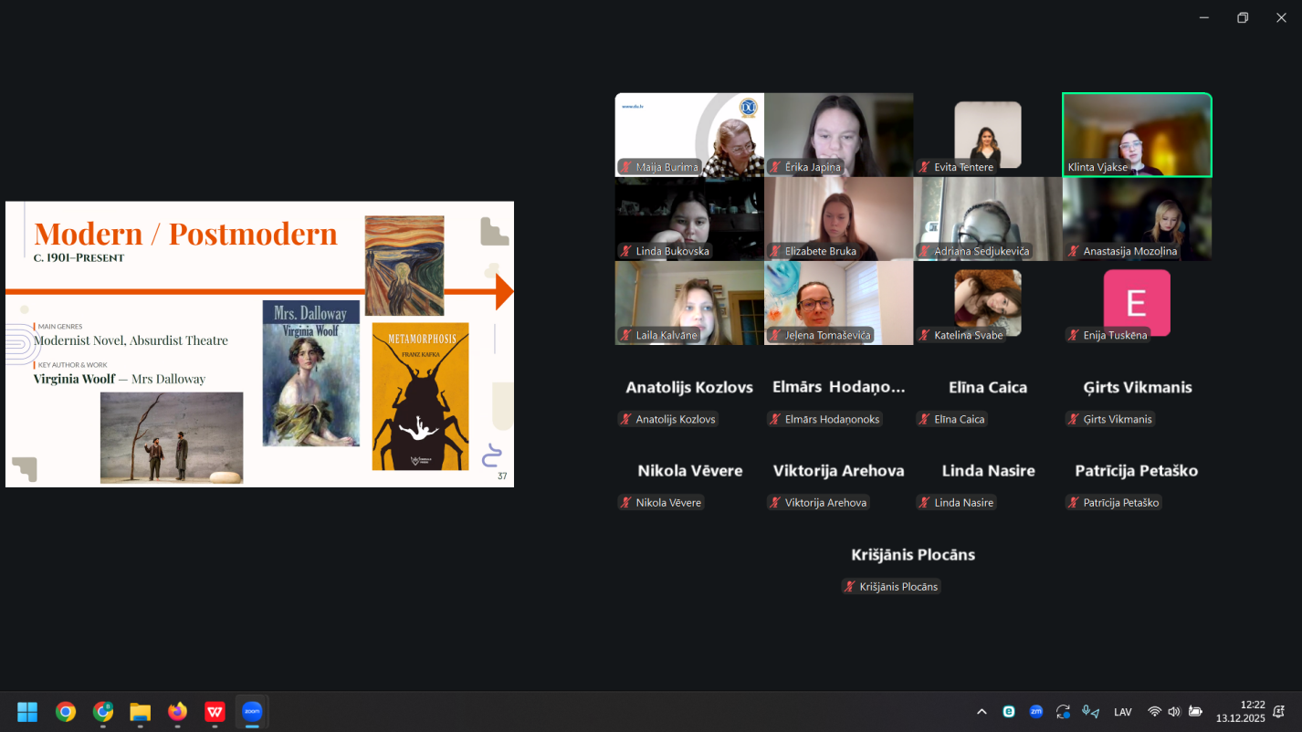 Studējošās aktualizēja vairākas ar valodu saistītas tēmas: lasītprasme, grāmatu dizains lasīšanas paradumi mūsdienās, kā arī ieskicēja sociālo tīklu ietekmi. Nodarbībā tika sniegts pārskats par angļu literatūras attīstību – no senās angļu valodas līdz mūsdienu formām, piemēram, “Instagram poetry” un fanfiction, rosinot jauniešus uztvert literatūru kā dzīvu un mainīgu procesu.