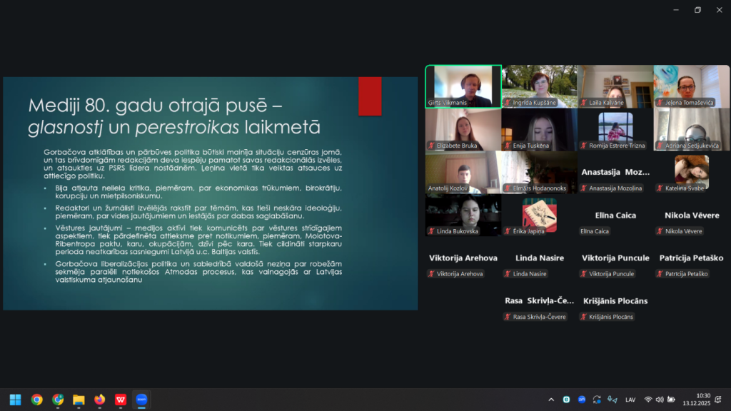 Pirmo nodarbību “Cenzūra Latvijas medijos un tās liberalizācijas procesi PSRS norieta periodā: žurnāla “Avots” piemērs” vadīja Ģirts Vikmanis, Daugavpils Universitātes Valodu un literatūras katedras zinātniskais asistents un doktorants.
