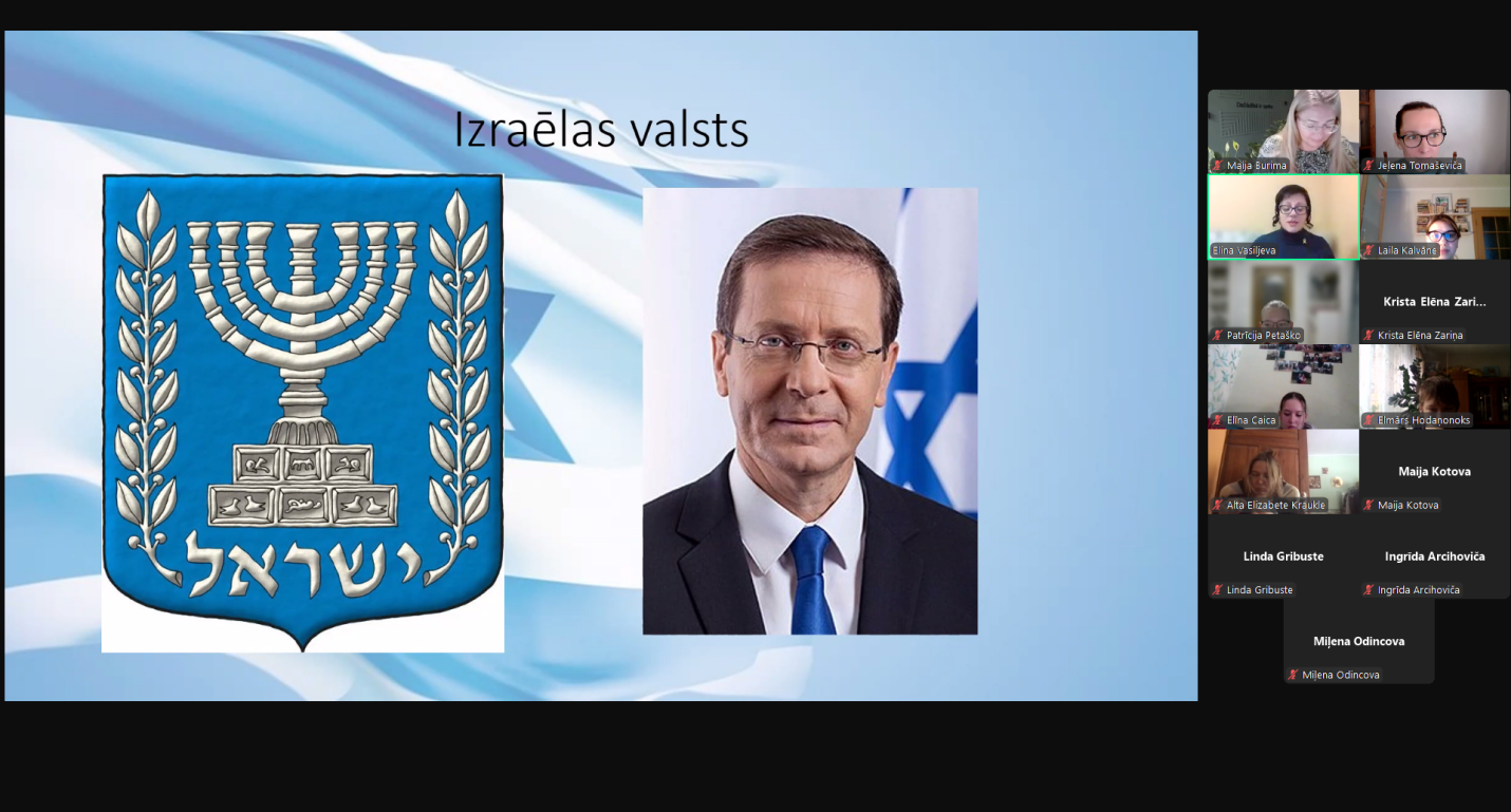 Pirmo nodarbību „Izraēla: par un pret” vadīja Dr. philol. Elīna Vasiļjeva, DU Humanitāro un sociālo zinātņu fakultātes Valodu un literatūras katedras profesore. Viņa stāstīja par Izraēlu, sniedzot ieskatu valsts vēsturē,  ar dažādu piemēru starpniecību raksturojot šīs zemes sabiedrības dzīvesveida un kultūras īpatnības un daudzveidību. Profesore analītiski izvērtēja svarīgākos aktuālos notikumus, skaidrojot Izraēlas un Palestīnas konflikta būtību, kā arī teroristiskās organizācijas Hamās lomu šajās norisēs.