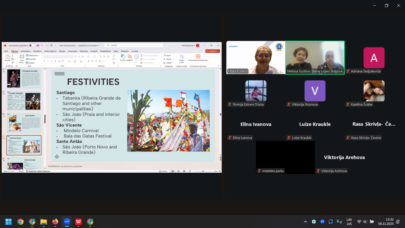 Bakalaura studiju programmas studentes Melissa Linda Scotton un Elaine Cristy Cruz Spencer Lopes (Kaboverde) vadīja nodarbību „Cape Verde: Nôs morabeza. Kaboverde – mūsu sirsnība”, kurā tika atklāta Kaboverdes salu kultūras daudzveidība, viesmīlības tradīcijas un dzīvespriecīgā atmosfēra.