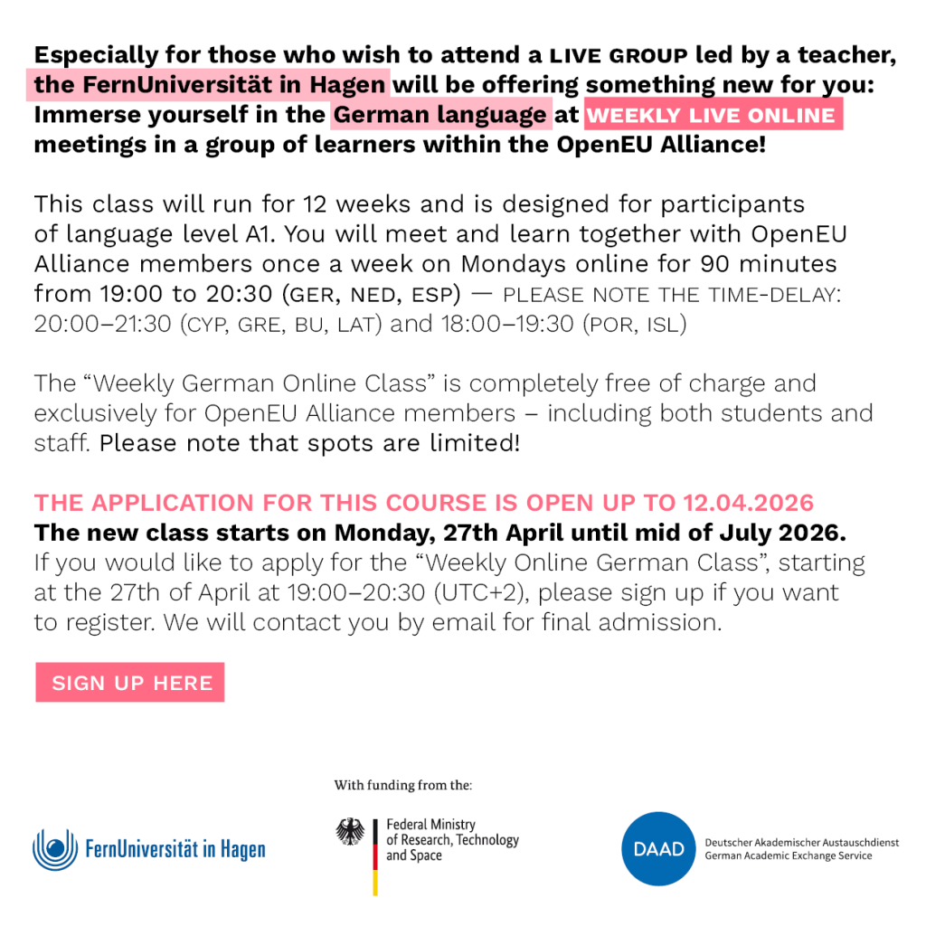 Application form for the OpenEU Weekly German Online Class – FernUniversität in Hagen