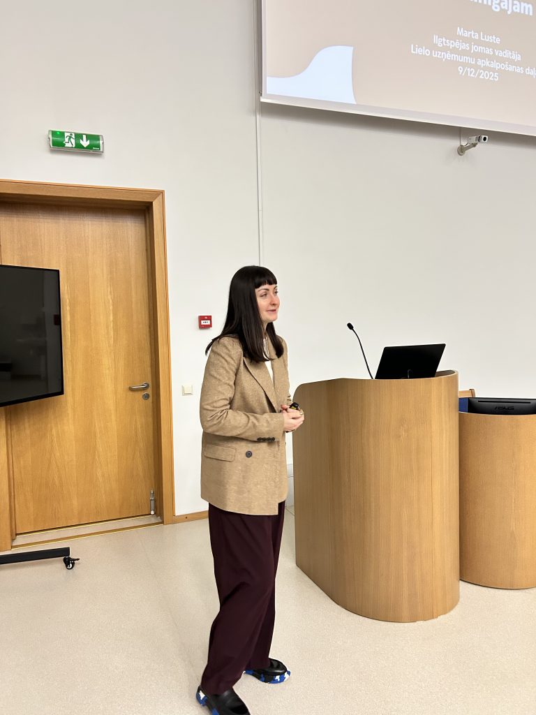 Savukārt semināra otrajā daļā Swedbank Ilgtspējas jomas vadītāja Marta Luste prezentācijā “Būtiskais ilgtspējā: Kas slēpjas aiz mainīgajām prasībām?” pievērsās ilgtspējas jautājumu nozīmei uzņēmējdarbībā un sabiedrībā, skaidrojot strauji mainīgās prasības un to praktisko ietekmi.