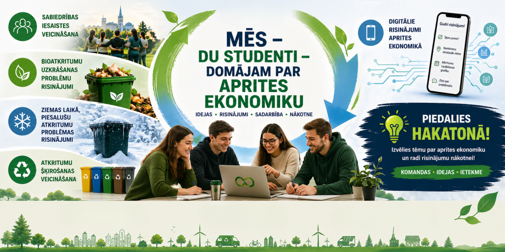 2026. gada 21. maijā Daugavpils Universitātē, Parādes ielā 1, norisināsies inovāciju pasākums – hakatons “Mēs – DU studenti – domājam par aprites ekonomiku”. Pasākums pulcēs Daugavpils Universitātes studentus, kā arī Latgales reģiona jauniešus.