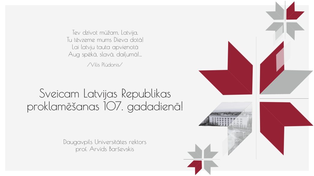 Daugavpils Universitāte sveic Latvijas Republikas proklamēšanas 107. gadadienā.