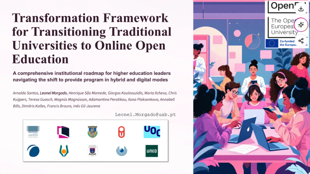 OpenEU projekta ietvaros Daugavpils Universitātes (DU) pārstāve Ilona Plaksenkova, kura atbild par projekta darba pakas “Build capacity and harness the power of digital education” (Veidot kapacitāti un izmantot digitālās izglītības potenciālu) īstenošanu Daugavpils Universitātē, ir līdzautore zinātniskam rakstam “Transformation Framework for Transitioning Traditional Universities to Online Open Education” (Transformācijas modelis tradicionālo universitāšu pārejai uz tiešsaistes atvērto izglītību). Raksts publicēts starptautiskās konferences “Innovating Higher Education Conference 2025” tēžu krājumā. Darba pakas mērķis ir stiprināt zināšanas un praktiskās prasmes par digitālās izglītības iespējām augstākajā izglītībā Eiropā un ārpus tās, vienlaikus veidojot OpenEU kā vadošu Eiropas universitāšu sadarbības platformu atvērtās un tālmācības izglītības jomā.
