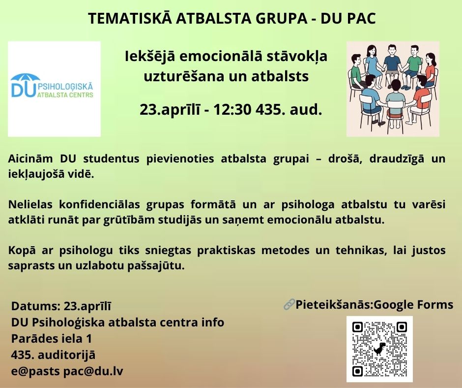 Daugavpils Universitātes Psiholoģiskā atbalsta centrs aicina studentus piedalīties īpašā psiholoģiskā atbalsta pasākumu ciklā aprīlī un maijā.