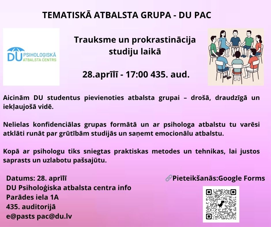 Pasākums 28. aprīlī “Trauksme un prokrastinācija studiju laikā”