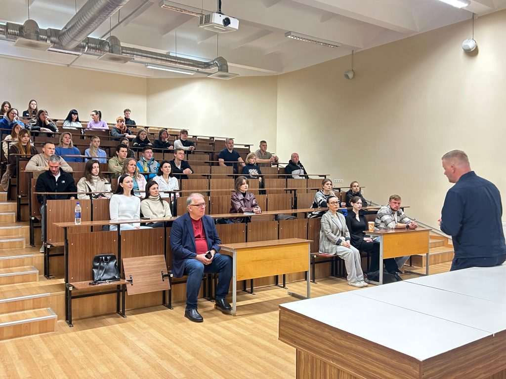 Studiju kursa “Civīlā drošība un aizsardzība” ietvaros notika diskusija, kurā Reinis Pozņaks ar vienkāršiem, dzīvē balstītiem piemēriem un idejām rosināja studentus domāt par drošības politikas un civilās aizsardzības nozīmi mūsdienu sabiedrībā. Sarunas laikā tika aplūkoti gan nacionālās, gan starptautiskās drošības aspekti, kā arī studentiem bija iespēja uzdot jautājumus un paust savu viedokli.