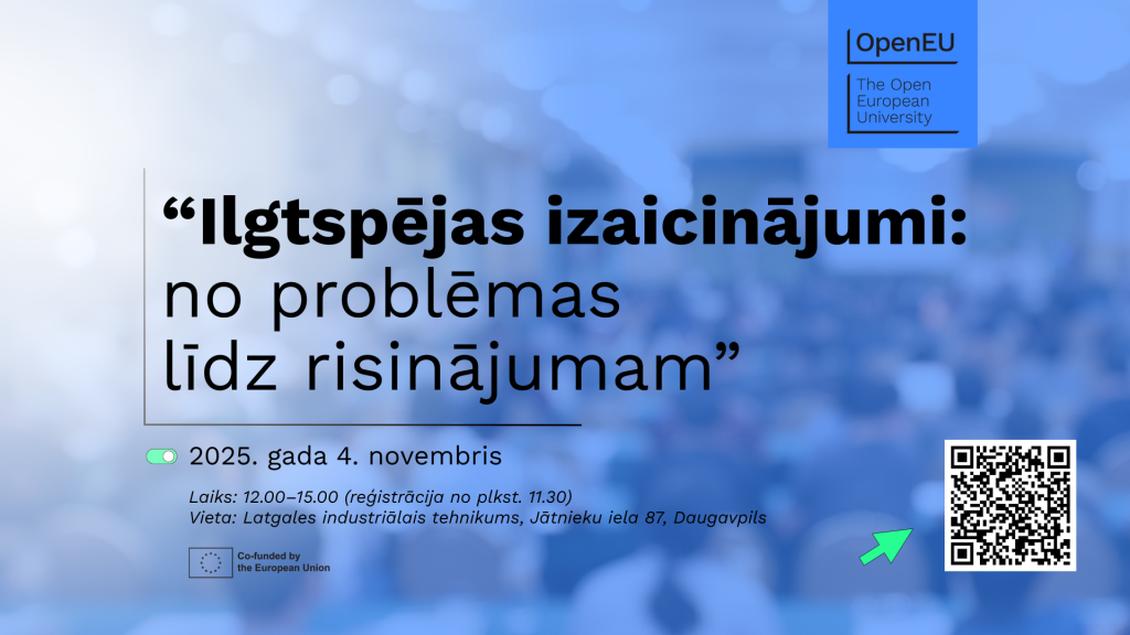 Seminārs “Ilgtspējas izaicinājumi: no problēmas līdz risinājumam” tiek organizēta projekta OPEN EU ietvaros.