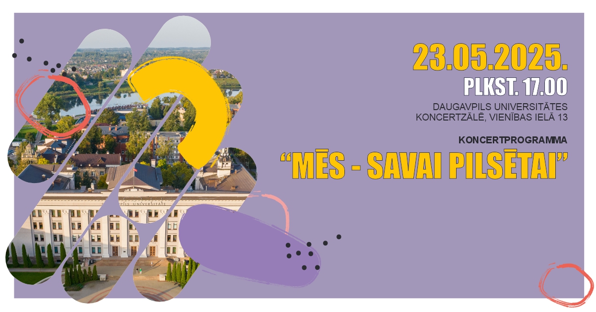 Daugavpils Universitāte jau vairāk nekā gadsimtu ir būtiska pilsētas kultūras, izglītības un sabiedriskās dzīves daļa. Koncerts “Mēs – savai pilsētai” ir veltījums Daugavpils bagātajai vēsturei, tās daudzveidīgajai tagadnei un radošajai nākotnei.