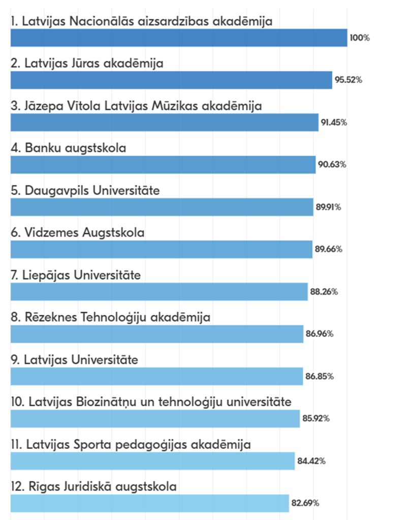 Šie rādītāji ļauj novērtēt ne tikai studiju kvalitāti, bet arī augstskolu spēju sagatavot darba tirgū pieprasītus speciālistus.