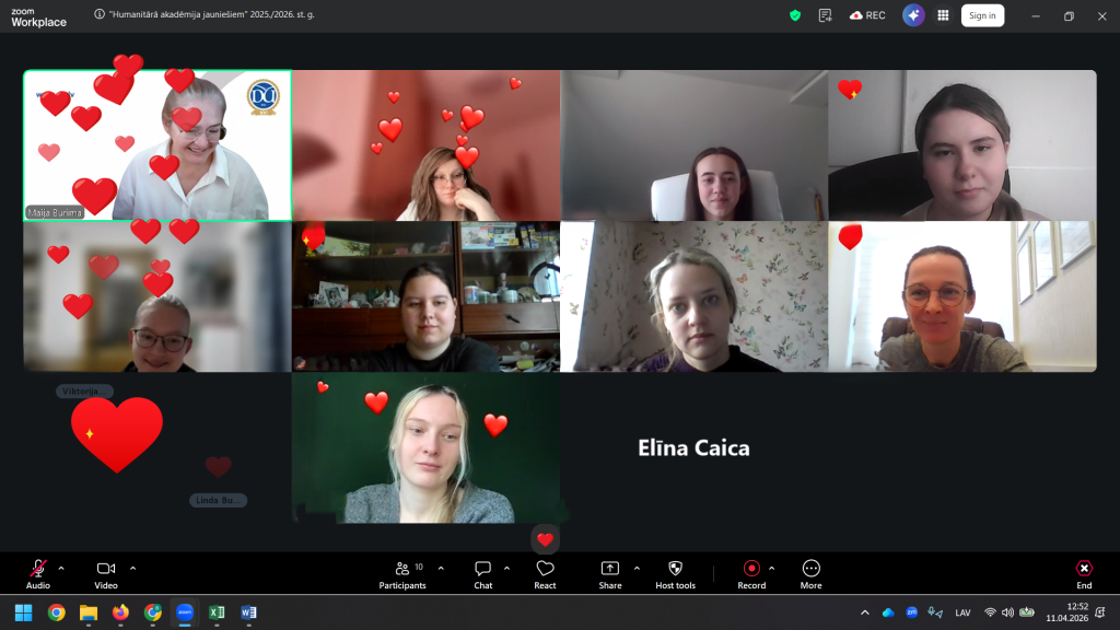 2026. gada 11. aprīlī plkst. 10.00 video konferenču platformā ZOOM notika “Humanitārās akadēmijas jauniešiem” (HAJ) 2025./2026. studiju gada noslēdzošās nodarbības un izlaidums.