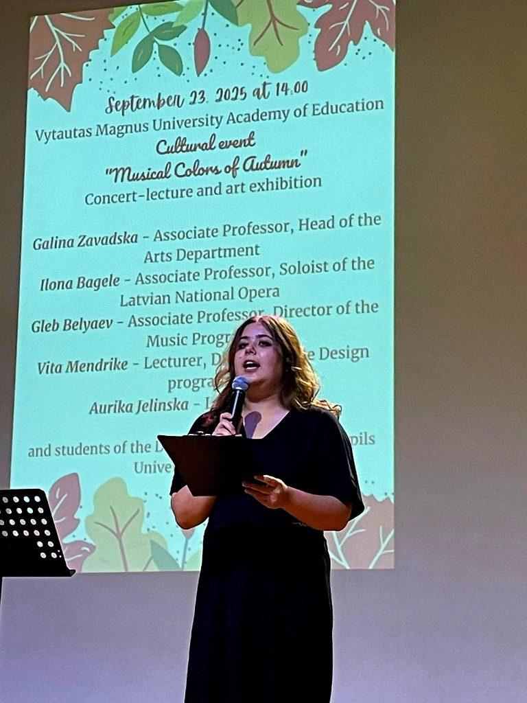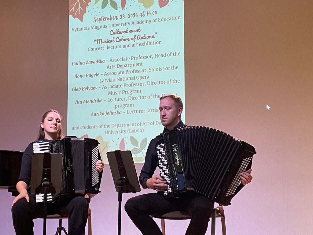 Šī gada 23. septembrī Viļņā (Lietuvā), Vītauta Dižā Universitātes Izglītības akadēmijā notika starptautisks sadraudzības pasākums “Musical colors of Autum”. Tā ietvaros notika Daugavpils universitātes Mākslu katedras pasniedzēju un bakalaura un maģistra studiju programmas studentu koncertlekcija un mākslas darbu izstāde. Pasākumu organizēja DU docente Gaļina Zavadska un lektore Vita Mendriķe.