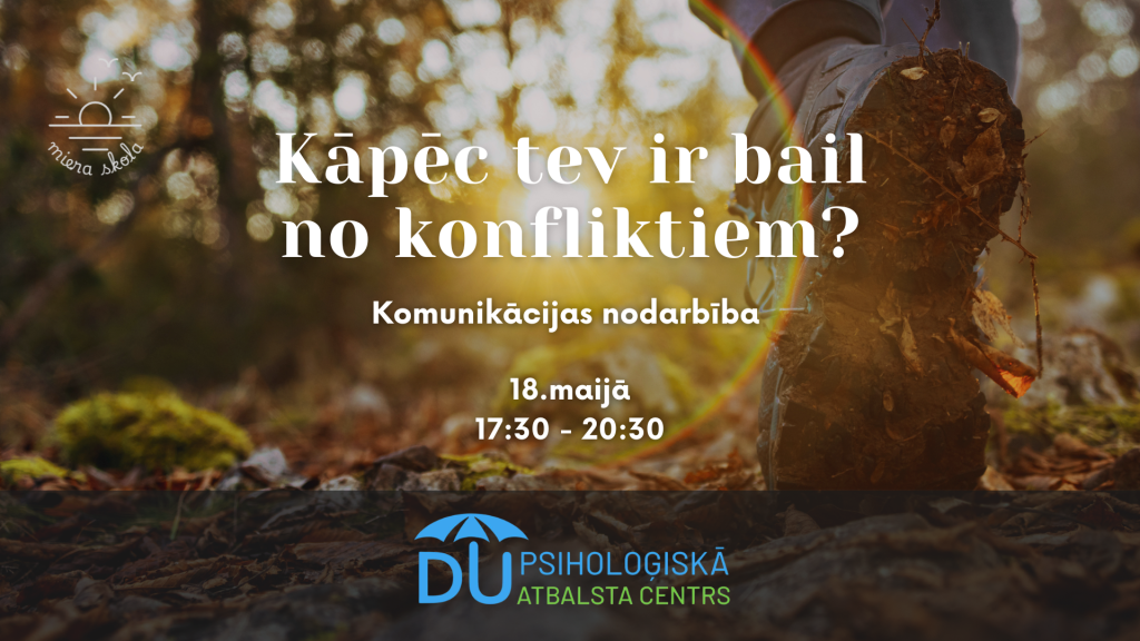 Daugavpils Universitātes Psiholoģiskā atbalsta centrs sadarbībā ar biedrību Miera skola aicina uz praktisku nodarbību par to, kāpēc mums ir bail no konflikta un kā uz to iespējams paskatīties citādāk. Kāpēc mums ir bail no konfliktiem? Un kāpēc mēs tik bieži no tiem izvairāmies?