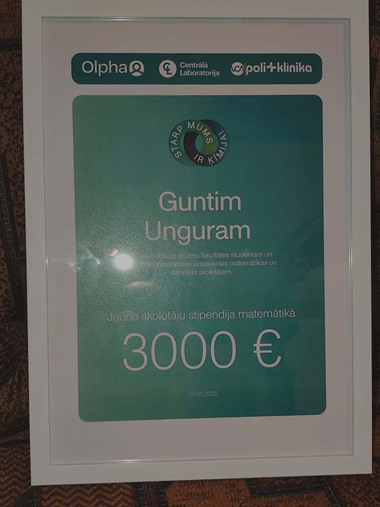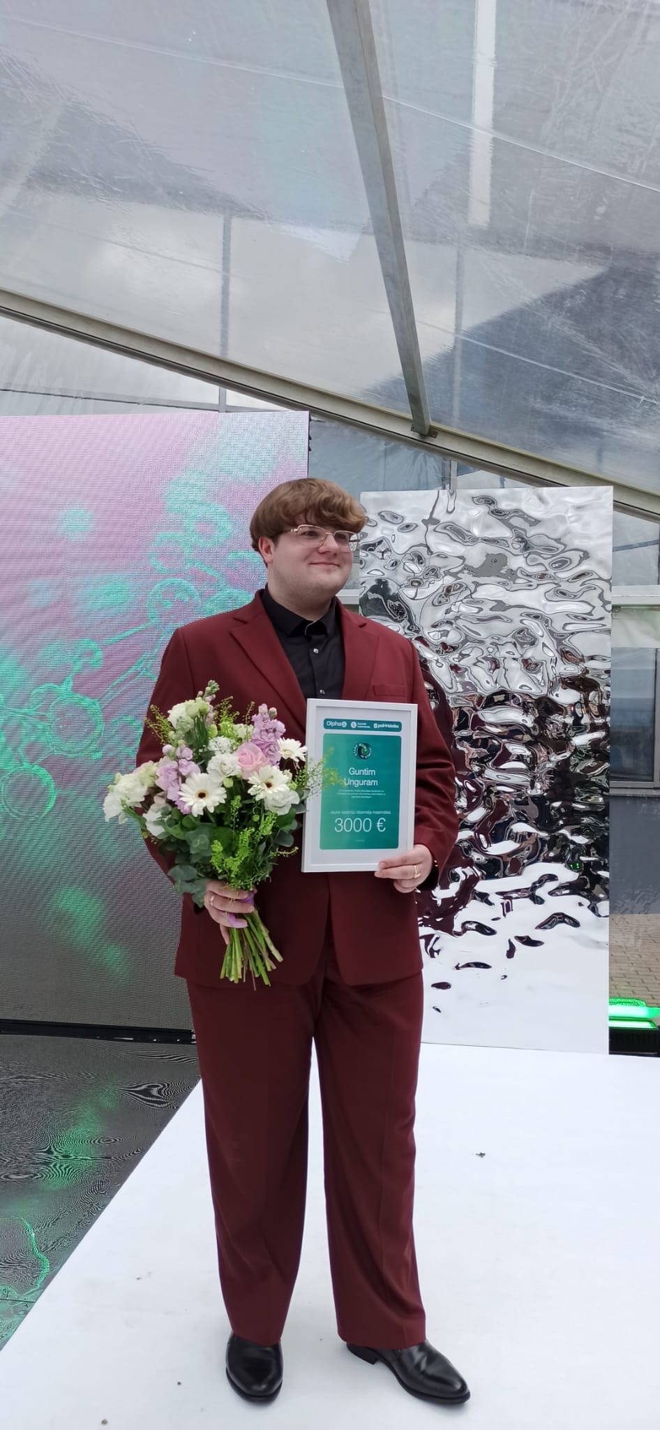 Viena no stipendijām 3000 eiro apmērā tika piešķirta arī Daugavpils Universitātes PBSP “Skolotājs” specializācijas “Datorika un matemātika” 3.kursa studējošajam un Krāslavas Varavīksnes vidusskolas matemātikas un datorikas jaunajam skolotājam Guntim Unguram.