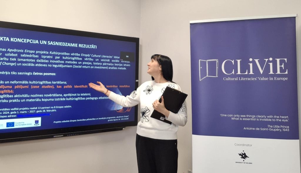 Continuing the discussion on the implementation and initial results of the project “Cultural Literacies’ Value in Europe”, Associate Professor Ludmila Aleksejeva presented a paper titled “SROI Methodology as a Cultural Project Evaluation Development Tool: Opportunities and Limitations” in the conference working group “Regional Economy, Finance, and Credit”. The study was prepared in collaboration with Associate Professor Alīna Romanovska. The presentation addressed the issue of assessing the socio-economic impact of cultural literacy – an evaluation that is rarely carried out in practice, as the resulting benefits are difficult to quantify. Nevertheless, such impact plays a crucial role in strengthening social well-being, participation, and cohesion. As one of potential solutions, the SROI (Social Return on Investment) methodology was analysed. This approach enables the quantitative evaluation of non-economic benefits such as community cohesion, the quality of cultural participation, and participants’ personal growth. The presentation outlined both the advantages and limitations of this methodology, drawing on the process and outcomes of mini-projects implemented within the CLiViE framework.