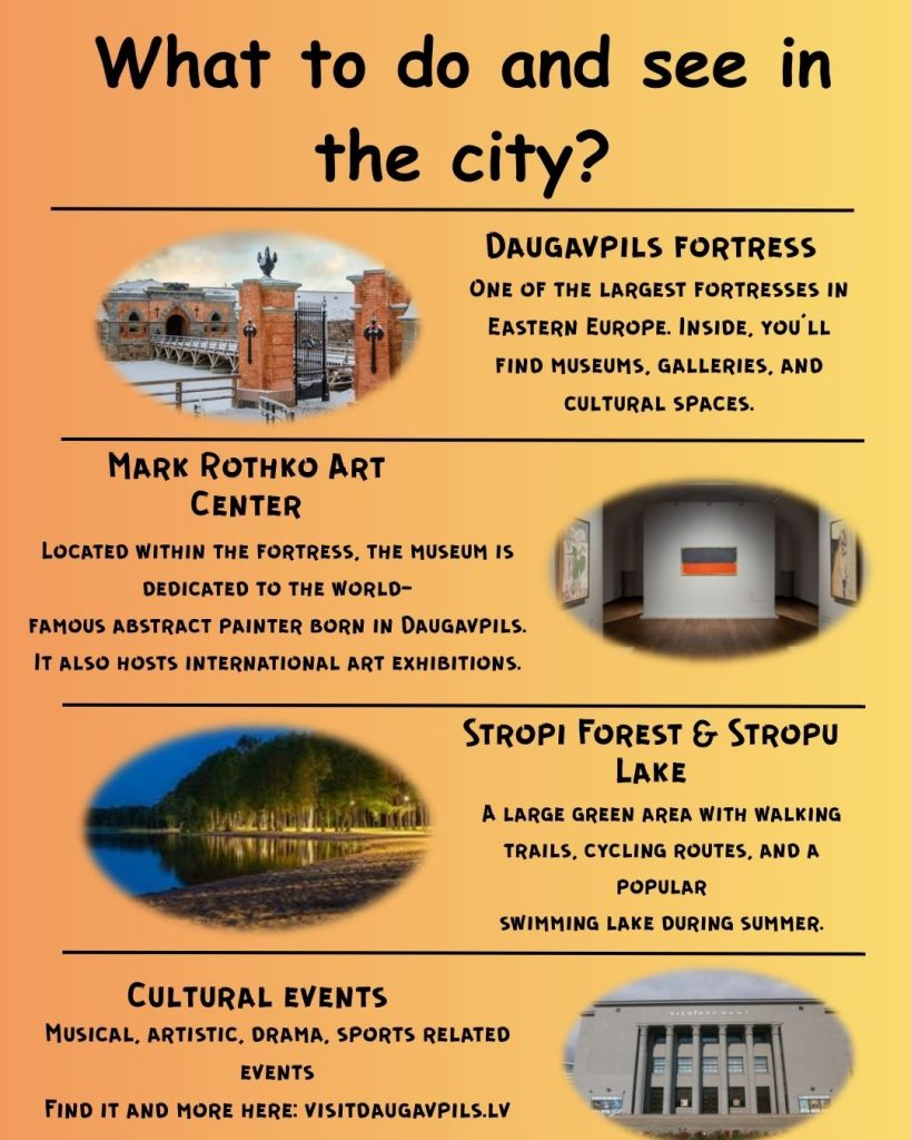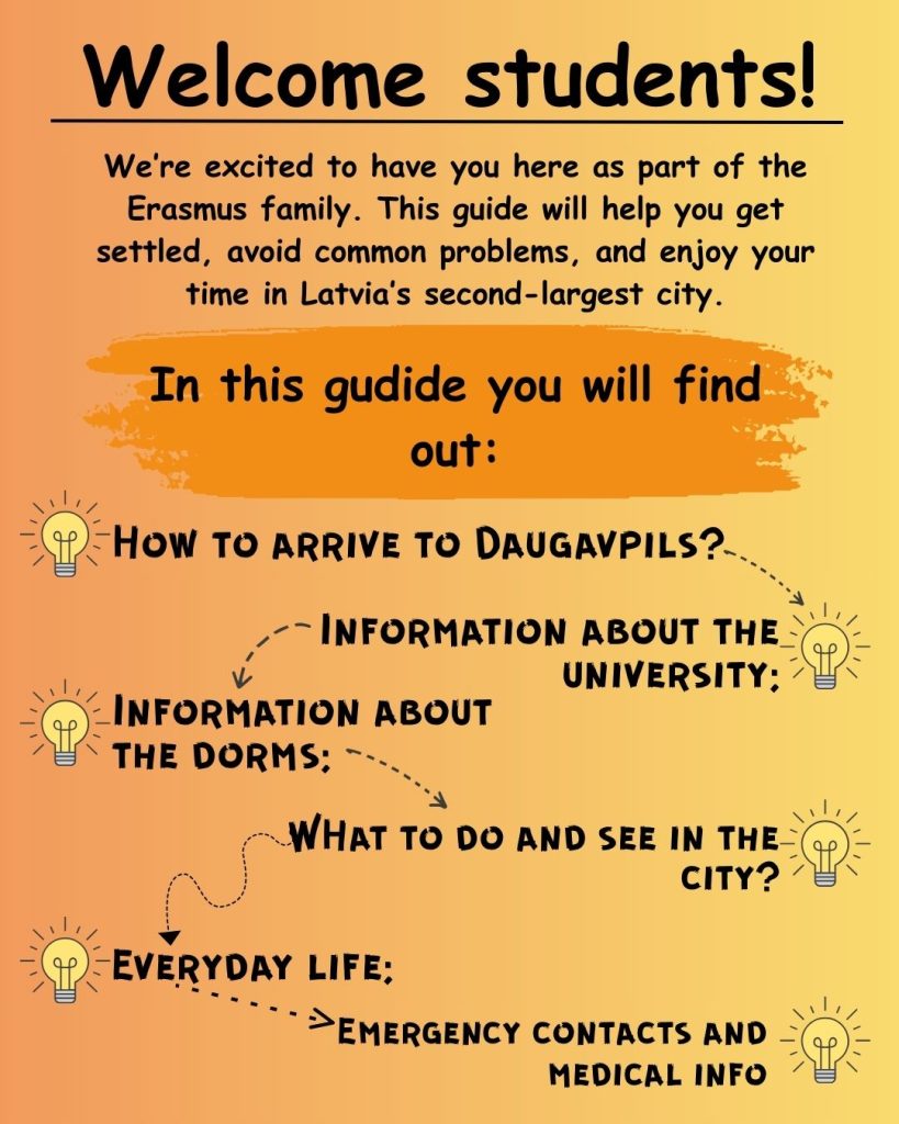 Once we receive nomination, DU Erasmus+ coordinator will inform student about application procedure and will send all necessary information about coming to Latvia and Daugavpils. Online application form has to be filled out in https://exchange.du.lv/