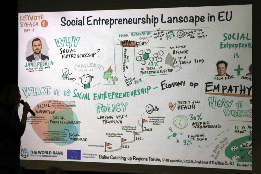 Daugavpils University’s Research and Business Center “REBUS” Head, Sanita Kecko, participated in the Baltics Catching-Up Regions Initiative (CuRI) Forum, which took place on 17–18 September 2025 in Anykščiai, Lithuania. Hosted by the European Commission and the World Bank, this second peer-learning forum of the Baltics Catching-Up Regions Initiative (CuRI) focused on the role of social enterprises and social innovation in building resilience in border and peripheral regions.
