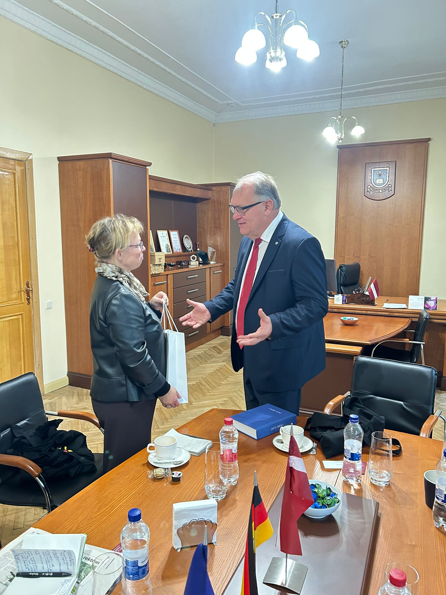 During the visit, discussions were held on cooperation opportunities with German universities, as well as on the importance and role of Daugavpils University in the region of Eastern Latvia. Several new areas of collaboration were outlined, which will strengthen international partnerships and promote academic and cultural exchange.
