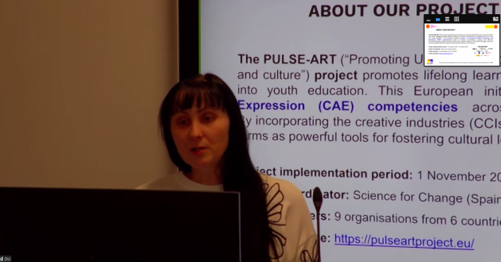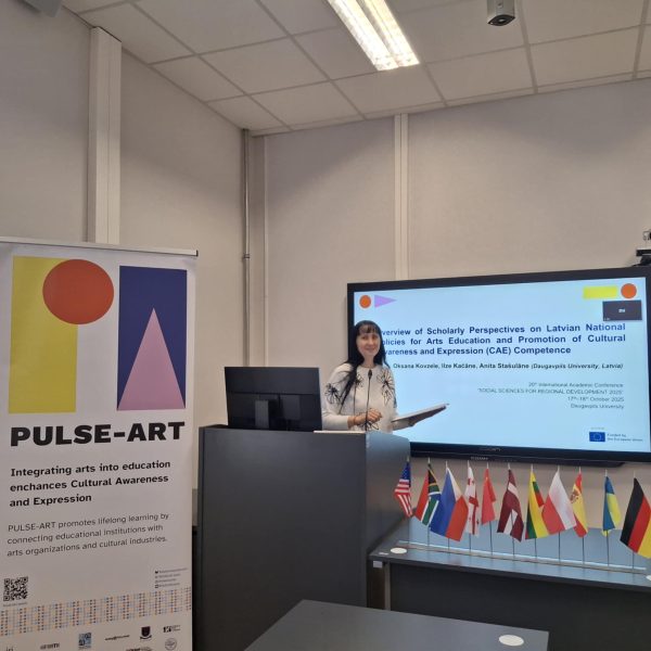 Projekta “Mākslas un kultūras devums sapratnes un mūžizglītības veicināšanā” (Promoting Understanding and Lifelong learning Successful Education through the ARTs and culture (PULSE-ART); Grant agreement No. 101178988) pētniece Dr. philol. Oksana Kovzele vadīja konferences sekciju “Socioloģija. Sociālā psiholoģija” un tajā uzstājās ar prezentāciju Overview of Scholarly Perspectives on Latvian National Policies for Arts Education and Promotion of Cultural Awareness and Expression (CAE) Competence (pētījuma līdzautori – PULSE-ART pētnieces Dr. philol. Ilze Kačāne un Dr. theol. Anita Stašulāne).